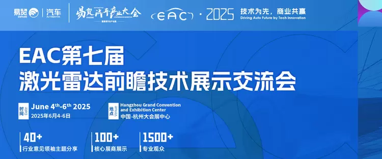 作为激光雷达领域年度行业风向标,由易贸汽车携手海外重磅合作伙伴DVN联合产业链上下游举办的EAC第七届激光雷达前瞻技术展示交流会暨展将于6月4-6日在杭州大会展中心盛大启幕。