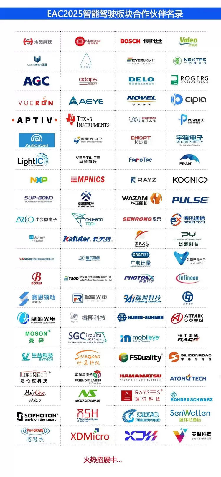 目前已经确认有来自博世、大陆、安波福、法雷奥、奔驰、大众、日产、路特斯、Stellantis、保时捷、比亚迪、泛亚、宝马、电装、采埃孚、零跑、一汽、华为、江淮、奇瑞、智己、北汽、比亚迪、东风、极氪、小米、丰田、福特、本田、宁德时代、吉利、捷豹路虎、福特、上汽大通、零束、蔚来、奥迪、长城、长安、哈曼、麦格纳、延锋等国内外T1以及主机厂企业代表团深度参与到EAC2025中。他们将深入参与行业论坛主题演讲及展台参观了解最新行业产品、交流前瞻技术、助力行业打破圈层结交人脉实现商务合作。