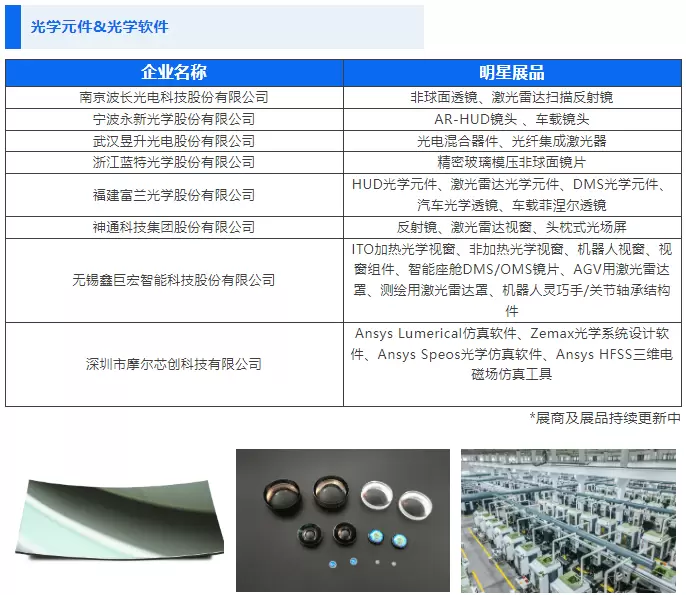 具身智能&车载摄像头&光学元器件&设备&测试等领域鑫巨宏、富兰光学、永新光学、波长光电、蓝特光学、艾微视、深瑞视、永鼎、芯路、滨松、瑞霏光电等国内外代表企业也将集中展示机器人灵巧手/关节轴承结构件、HUD光学元件、激光雷达光学元件、DMS光学元件、汽车光学透镜、非球面透镜、车载相机模组AA机、自由曲面三维面型检测仪等最新前沿领域产品。