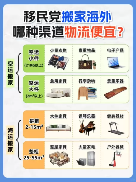 如果着急用的家具、行李杂物、甚至贵重乐器,空运也能搞定!虽然价格比海运贵,但能帮你快速安顿新家,适合不在乎加钱且急需的小伙伴。