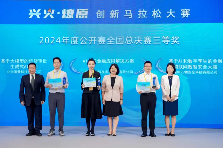 活动现场,与会嘉宾为“兴火•燎原”创新马拉松公开赛2024年度全国总决赛获奖团队颁奖,并正式启动2025年“兴火•燎原”创新马拉松大赛。