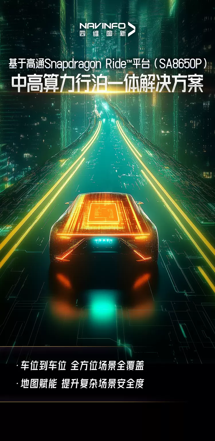 此外,四维图新还同步推出了基于SA8650平台的中高阶行泊一体方案。该算力平台具备100TOPS稠密算力,支持城市NOA、高速NOA、记忆泊车等功能,做到车位到车位的全场景能力覆盖,并通过地图赋能与算法结合,进一步提升复杂场景安全性。