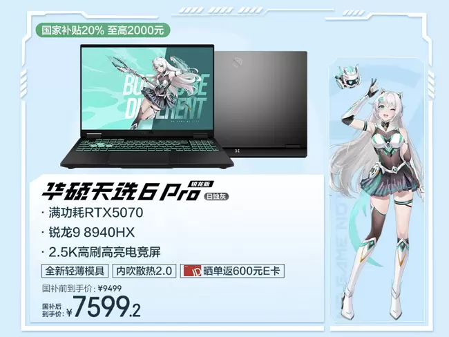 玩家福音,RTX 5070加持6999元起,华硕天选6 Pro锐龙版高能来袭