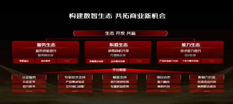 数智生态聚焦服务、渠道和能力三大核心维度,助力生态合作伙伴精准找到市场定位,系统性强化数智能力,持续探索生意增长新路径。