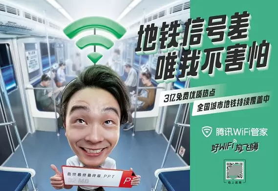 (图:腾讯WiFi管家3亿免费优质热点,全国城市地铁持续覆盖中)
