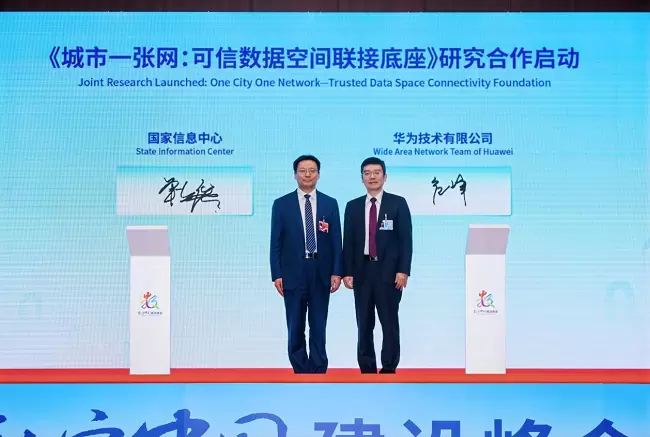 会上发布了多项数智技术新突破,覆盖区块链、大模型、智能算力、数据集等领域,同时举办了多场合作签约仪式。其中,国家信息中心与华为公司就《城市一张网:可信数据空间联接底座》达成研究合作,将围绕城市可信数据空间的联接底座,对业务场景、架构、运营等方面开展联合研究,助力城市全域数字化转型。