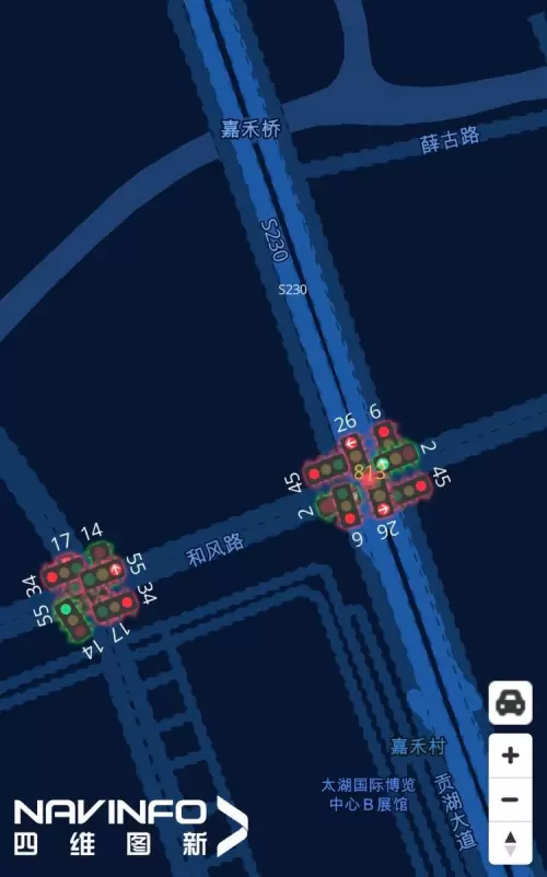 四维图新作为项目合作方,以无锡‘智慧小镇’作为试点,接入开放的实时数据,通过导航地图及车道级增强三维地图数据作为载体,将路口实时信息以三维形式呈现于车机、手机或其他智能终端中,用户可以提前预知路口红绿灯、行人、车辆等实时信息及事件信息及事件信息实时地呈现于地图中,这些实时信息通过与地图数据实时结合,可以有效地还原真实场景,为道路安全管控、高效运行,以及人们的智能化出行带来基础支撑作用。