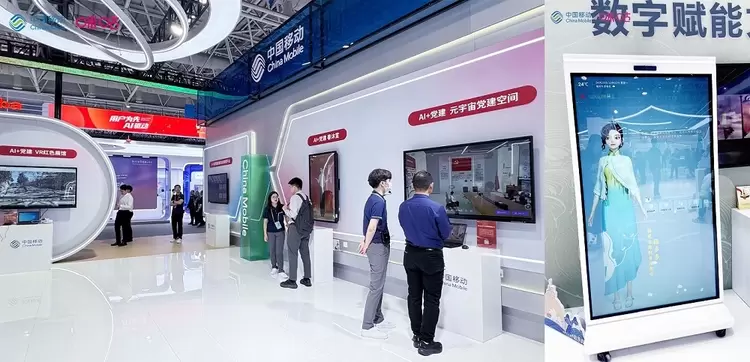 咪咕展会区域另一侧,更多的AI+数智体验正在上演。AI+党建展位上,数字火炬点燃了红色信仰,现场观众与中国移动“新动力量”的数智宣讲员春沐宣进行了一场浸润人心的思想对话;浸入中国移动互联网红色第一入口VR红色展馆,以VR全景互动图集和VR全景视频的形式构建了党员学习与爱国主义教育网络阵地;还能穿越元宇宙党建空间与同志们线上举手宣誓,体验高互动性和高参与度的元宇宙数智党建,以AI分身佩戴党员徽章、拍摄合影等。现场观众也可以与福建文旅数字推荐官“福多多”进行一番现场热聊,听他优雅讲述八闽大地的点点滴滴,浸赏红楼梦《读西厢》的数字人演绎舞台,感受传统文化与数字技术的水乳交融。
