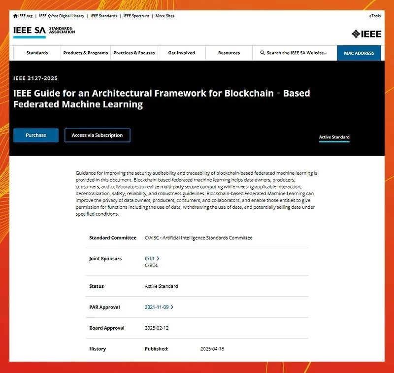 IEEE P3127标准,为基于区块链的联邦学习提供了统一的架构指导,显著提升了多方联合建模的安全性、可追溯性与隐私保护能力。这一标准有效破解了跨机构协作过程中“数据孤岛”与“信任缺失”的难题,为政务、金融、医疗、工业制造等领域提供了安全可靠的数据共享与模型优化解决方案,推动了人工智能与区块链技术深度融合,促进了AI技术在垂直行业的标准化与规模化应用进程。