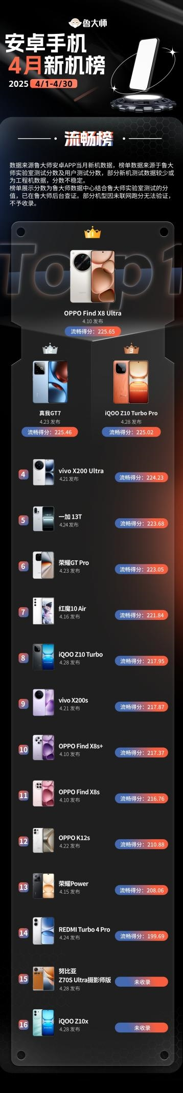 鲁大师4月新机性能/流畅/AI榜:骁龙8至尊领先版首发性能登顶,OPPO流畅持续领跑