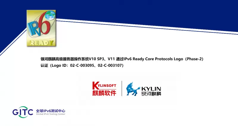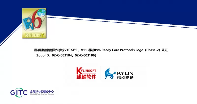银河麒麟高级服务器操作系统、银河麒麟桌面操作系统获得IPv6 Ready Logo证书
