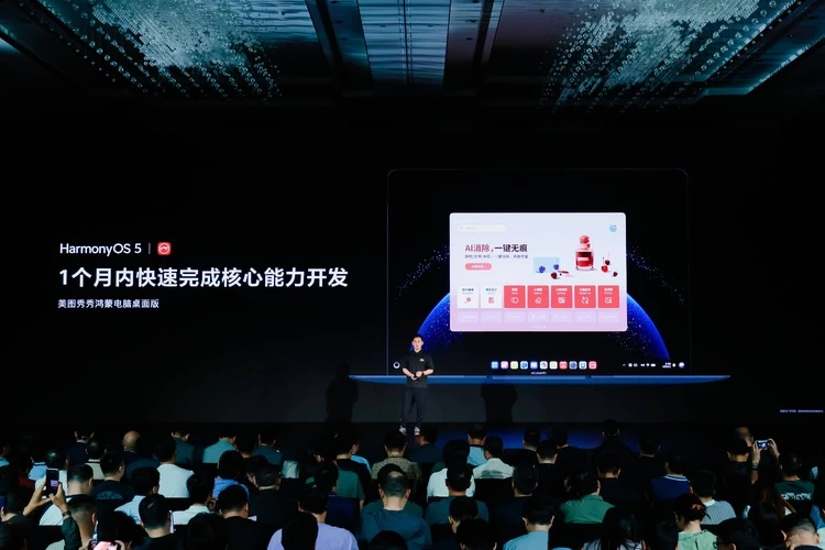 5月8日,华为于深圳召开鸿蒙电脑技术与生态沟通会,鸿蒙操作系统首次在电脑端亮相。美图秀秀桌面版作为首批深度适配鸿蒙电脑的影像处理软件,凭借鸿蒙操作系统的生态优势,仅用一个月即完成核心能力开发,功能覆盖度达Windows平台的98%,并带来更快更流畅的交互体验。美图公司高级技术总监郭晨晖出席并分享,美图秀秀桌面版在鸿蒙电脑上的适配成果——AI消除、智能抠图、AI变清晰、无痕改字四大AI修图改图能力,在鸿蒙电脑端已完成适配,修图改图效率与表现力双双提升。