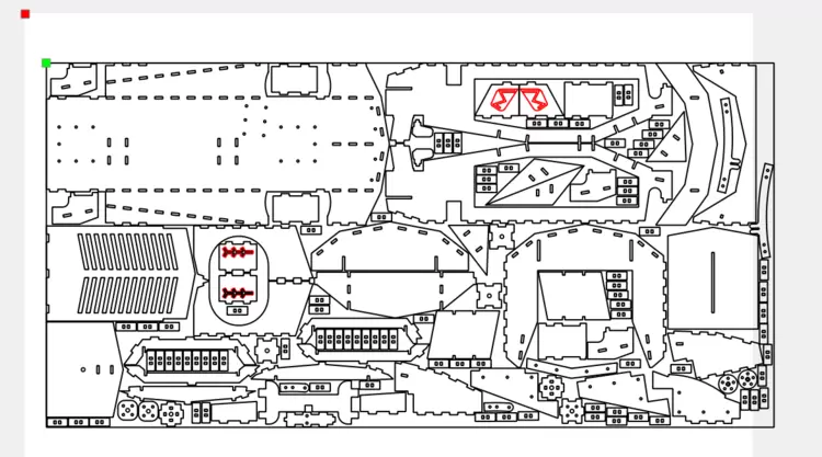 步骤1在激光切割软件中进行绘图,将超级跑车的设计图绘制出来,如下图所示。