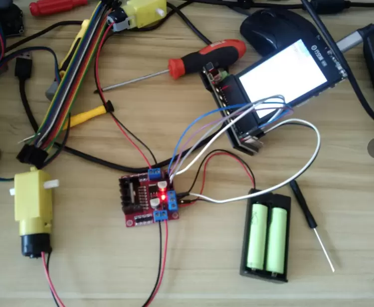 步骤7电路图连接好后,将行空板K10连接到电脑编程程序对TT马达的运行进行测试。