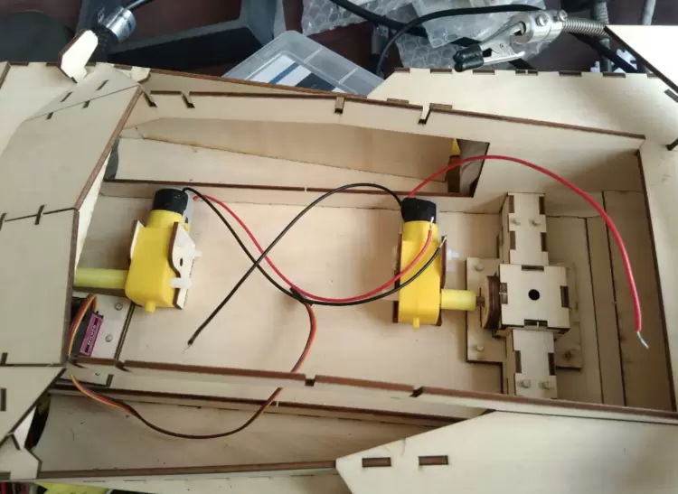 步骤5测试马达正常后,将TT马达安装到超级跑车上面,安装好后如下图所示。