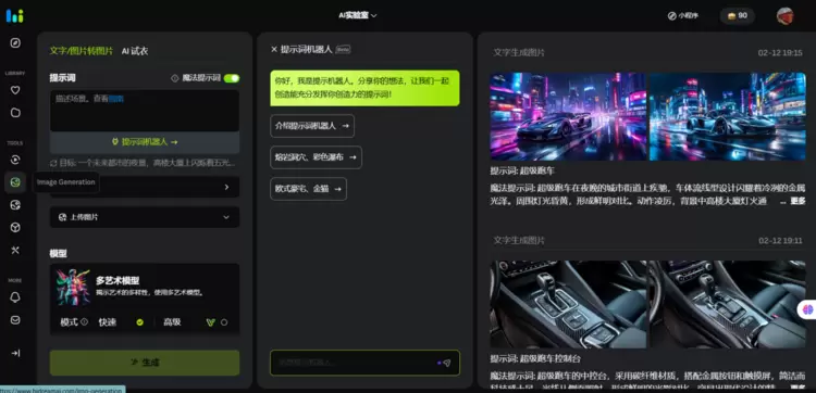步骤9利用AI图片生成软件用文字生成超级跑车控制台的背景图片。