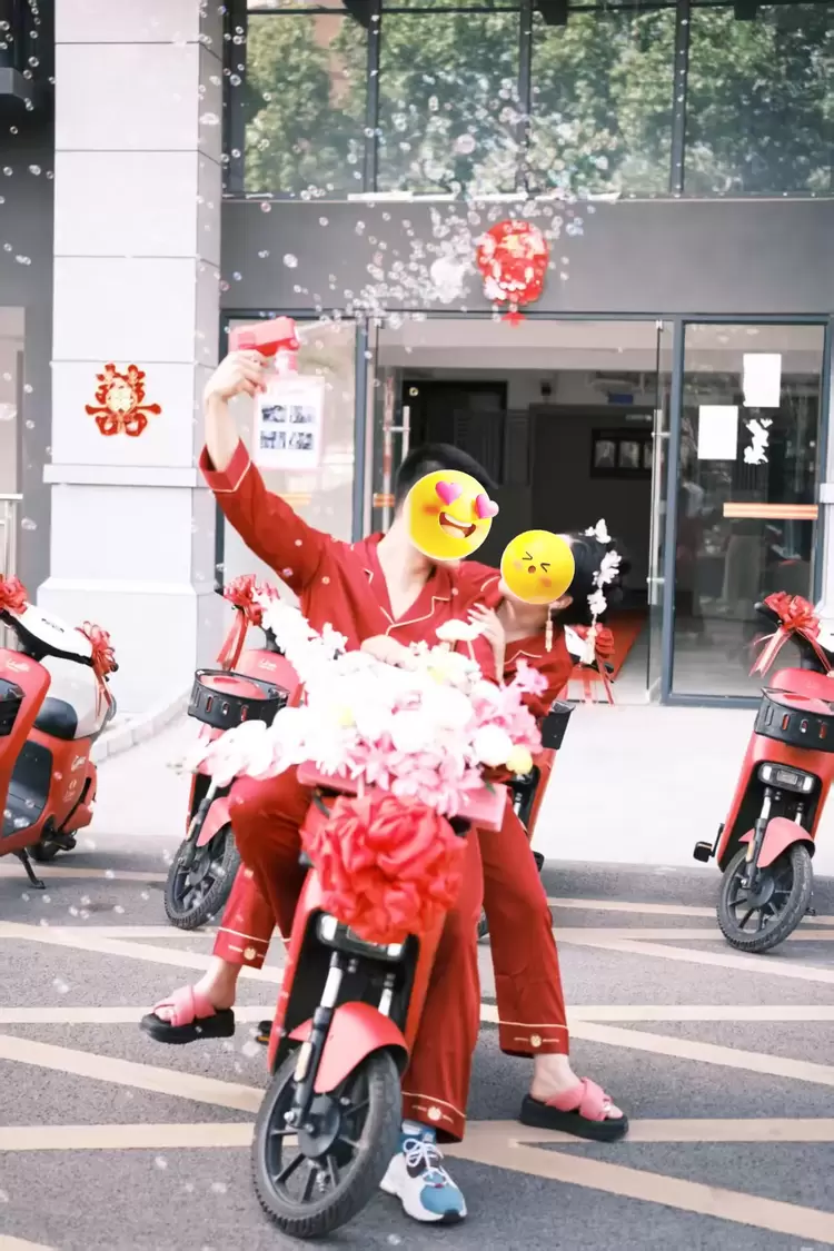 原来婚车还能这样?广元新人骑人民出行电动车,创意拉满