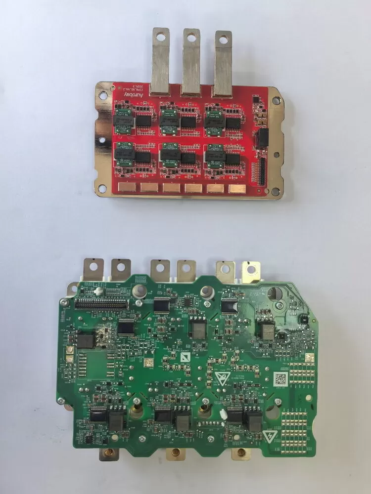 氮化镓功率模块(上),传统碳化硅模块(下)