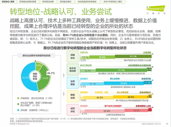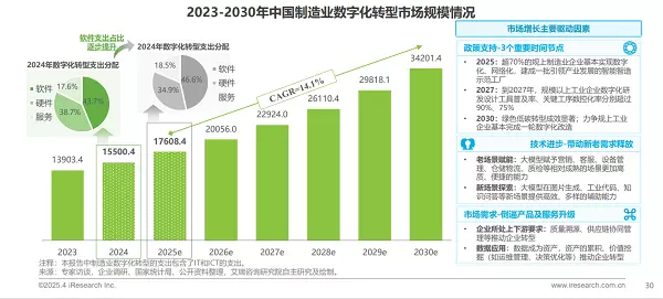 艾瑞咨询近日发布了2025年中国制造业数字化转型发展研究报告(简称《报告》),报告内容主要涵盖几部分:制造业数字化转型市场规模与竞争格局、需求市场宏观分析、 需求市场转型现状调研分析、供给市场产品及服务分析、供给市场典型案例展示、行业发展思考与启示、一线企业专家的实践分享与前瞻思考,核心内容要点如下: