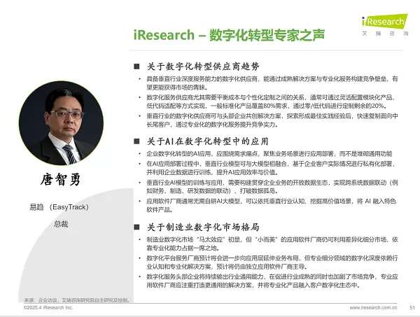 易趋总裁唐智勇认为数字化转型供应商趋势包括几点: