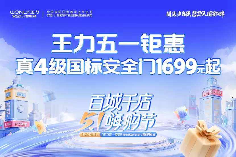 在中国安防门锁行业加速智能化转型的关键时期,国内安防门锁领军企业王力安防迎来“未来工厂”全线打通三周年重要节点。近日,其在全国范围内启动“百城千店-五一嗨购节” 全民安防升级活动,以1699元普惠价推出真4级国标安全门爆款产品,再次突破行业价格底线,不仅推动了高端安防产品的普惠化,更彰显了王力安防智能制造体系在产能与品质上的领先优势。