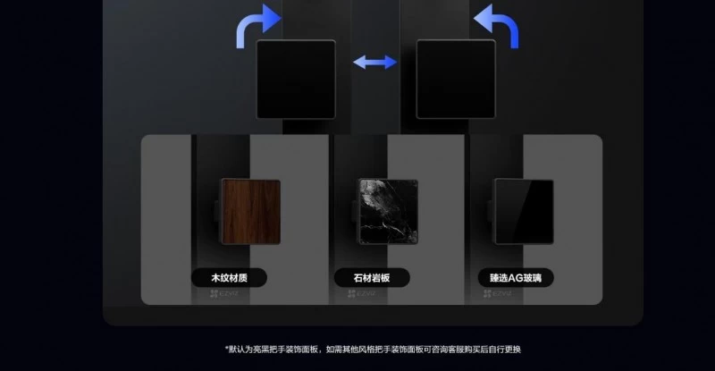 萤石启明Y5000FVX在设计上尽显匠心独运。其行业首创全金属机身设计,不仅赋予产品高端质感,更实现了金属面板上功能与透光的完美融合。前后面板采用偏位把手设计,有效规避夹手风险;其首创的把手自定义设计更是一大亮点,用户可随心更换玻璃、仿木纹或岩板质感的把手,让门锁不再只是冰冷的安防设备,而是能够完美融入各种家装风格的艺术点缀,成为家居美学的灵动延伸。