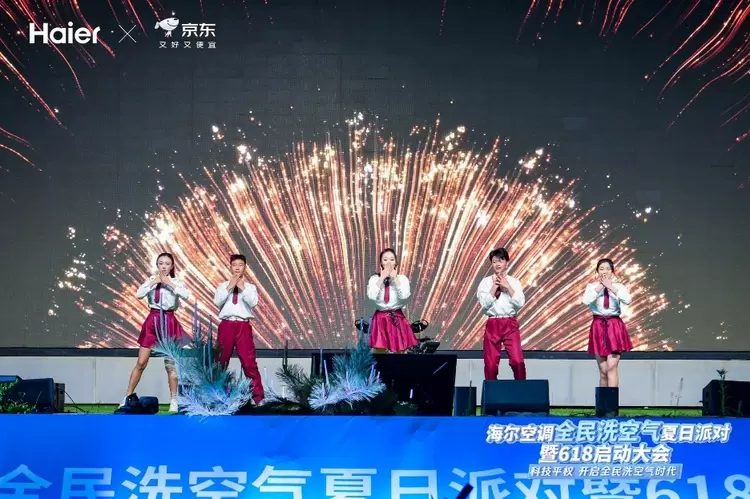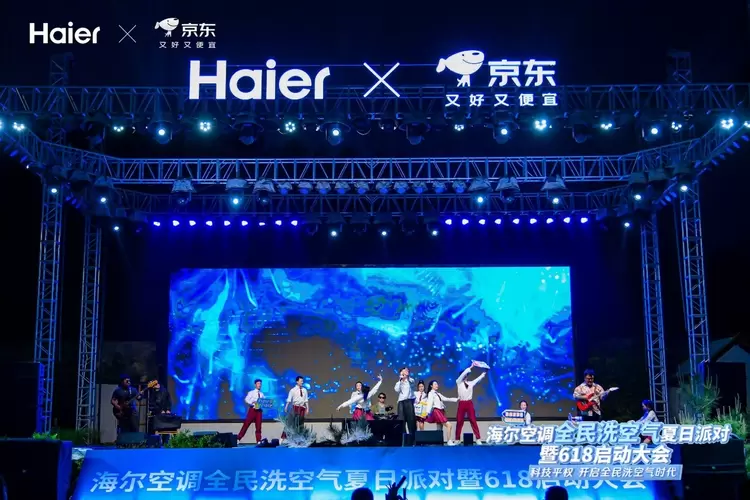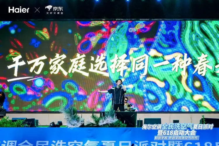 5月13日晚,济南九如山风景区化身音乐与科技的狂欢现场,“海尔空调全民洗空气夏日派对暨618启动仪式”震撼开启! 超燃的live音乐与沉浸式舞台艺术完美融合,将夏夜的热情与活力点燃至沸点!