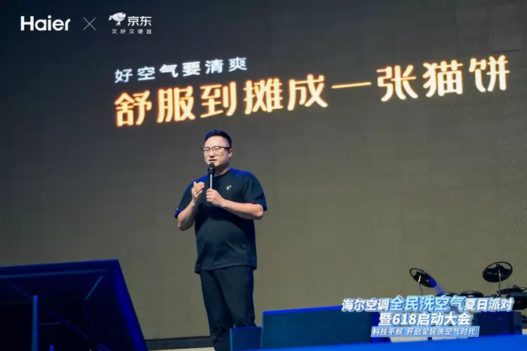 在万众期待中,海尔空调618全球启动仪式将发布会推向高潮。随着“5、4、3、2、1”的倒数结束,璀璨的光效瞬间点亮舞台,标志着“海尔X京东618”活动正式拉开帷幕,现场的观众们共同见证了“科技平权,全民洗空气”时代的开启。