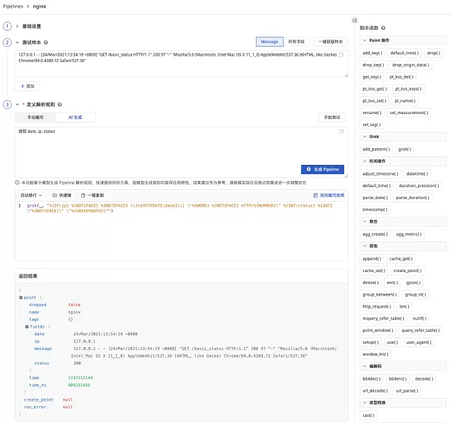 数据处理脚本的编写对开发人员来说是一项挑战。观测云引入了 AI 辅助的脚本编写功能,能够自动生成 Pipeline,帮助用户高效地处理和分析数据。