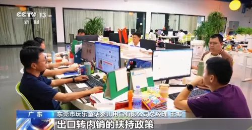 东莞市玩乐童话婴儿用品有限公司总经理 王振:刚好在4月12日的时候,京东出台了一个出口转内销的扶持政策。当时我们跟他们联系后,他们的反应非常非常快,马上把他们的采购政策发给我们。