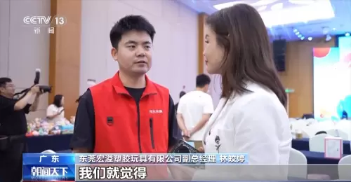 东莞宏溢塑胶玩具有限公司副总经理 林皎婷:我们公司一直都是销往美国为多,销往美国的营业额已经占了50%或以上,一直没有做过内销。我们觉得我们可以借这个平台跟京东对接完以后,看怎样带领我们做内销,把国内的市场做好。