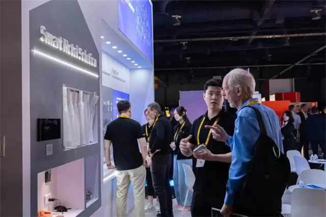 依托深厚的技术力和产品力,博联全栈AIoT解决方案已在智慧地产、智慧酒店、智慧养老、商业照明等多场景深度应用。展会现场就以智慧酒店场景为代表,直观展示了博联智能解决方案在终端的落地应用。智慧酒店体验区完整还原了客房设备集控、多种模式随心切换等场景,让博联式智慧生活可见、可感。