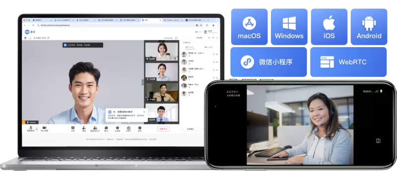 觅讯深知用户对会议接入方式的多元化需求,是业内极少数能同时覆盖电脑客户端、手机app、电脑网页端和微信小程序的会议平台,又是业内极少数能同时支持电脑网页和微信小程序发起会议的平台。对于经常使用不同设备开会的用户、或者需要外部临时用户参与的会议,不需要下载客户端,直接打开电脑网页或者微信小程序快速进入会议,尤为方便。某互联网创业公司负责人分享:"我们团队经常需要与投资人、供应商远程沟通,觅讯的网页入会和微信小程序入会功能对于这些临时加入会议的人群非常友好,会议组织者不用花时间指导对方安装软件,对方也表示操作非常简单,已经习惯了这种方式。