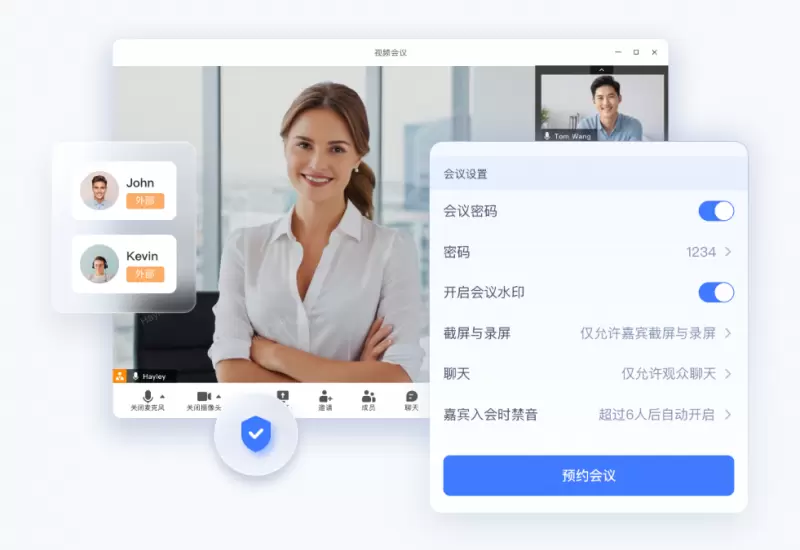 觅讯将信息安全视为服务体验的重要基石,针对企业内外协作场景打造了精细化的安全管理方案,在"会前-会中-会后"全流程配置安全管理功能。在会前,觅讯不仅支持会议密码,限制会议号+密码入会,还配有“等候室“功能,主持人开启”等候室“后,每个参会成员先进入等候室,经过主持人审核后再进入会议,进一步避免无关人员干扰;在会中,防止参会人截屏录屏、开启屏幕水印、成员信息对外脱敏、参会人邀请记录、参会人进出记录等功能一应俱全,从人员、内容两个层面保障会议信息安全;会后,主持人灵活配置会议录像分享及下载权限,对于私密性会议录像,支持仅对参会人开放、仅针企业内成员开放,或者不开放。