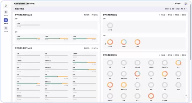 课中教学阶段,鸿儒教研AI课堂顾问通过智能一体机采集的语音与行为数据,实时生成课堂理答分析、教学环节诊断等多维度报告,为教师尤其是青年教师提供常态化的教学反思支撑。这打破了传统磨课依赖线下听课的时空局限,让每一堂课都成为可追溯、可优化的成长节点。