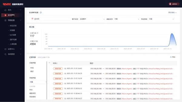 瑞星NDR不仅是应对病毒、入侵等已知威胁的“猎手”,更是洞察潜在风险的“预警器”—— 通过智能化检测技术,让企业无需依赖 “事后补救”,而是以“早知早防”的能力,在数字化进程中筑牢安全底线,真正实现“威胁未动,检测先行”的防护新境界。