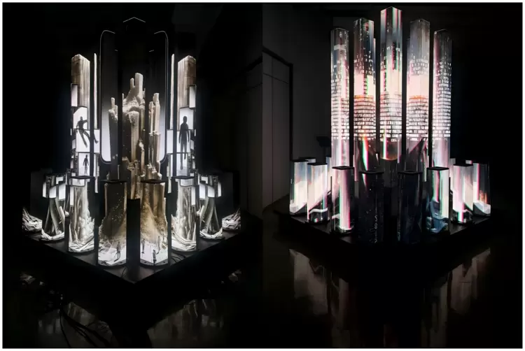 2024年原子空间全球首发「时空之境」新媒体程式化交互装置,携手12位国内外签约艺术家,以RC系列视柱屏为载体,构建多模态沉浸式叙事化交互视觉。时空之境展览由数十个独立一体式方柱屏组合而成,搭载强大内容管理系统,通过不同程式化组合,呈现不同场景下的全新视觉体验。