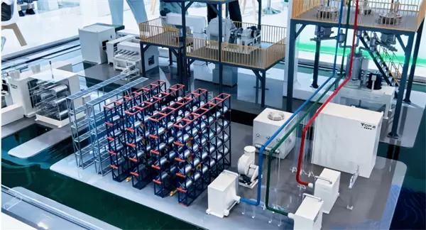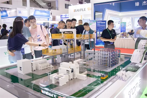 展台上,高能数造精心打造的干法电极中示线产线沙盘堪称吸睛神器。完整复刻从原材料自动化称量供应,到电极膜成型复合收卷的全流程设备布局与衔接方式。当参观者俯身观察,能清晰看到纤维化物料特殊储存转运系统如何运作,预混、纤维化等工序设备怎样高效协同。众多参观者纷纷赞叹“高能数造在工艺设计上展现的技术优势令人佩服!” 沙盘不仅是技术的可视化呈现,更彰显了高能数造对行业发展趋势的精准预判,以及在推动干法电极技术产业化应用上的坚定决心。