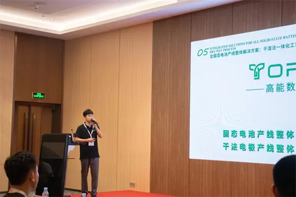 杨康博士以高能数造在全固态电池制造领域的创新成果与实践经验展开演讲分享,深度剖析了干法电极产线、固态电池产线的实践案例,结合高能数造十四项核心技术研发的成果介绍,引发了现场专家学者的强烈共鸣。作为全球电池行业盛典,本次论坛杨康博士的精彩分享,不仅展现了高能数造在技术创新上的前瞻视野,更加固了高能数造在新能源智能制造前沿领域的话语权。