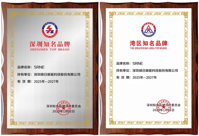 凭借卓越的综合实力和稳健的市场表现,硕日新能SRNE品牌顺利通过“深圳知名品牌”复审,继续保有该荣誉资格,并荣获“湾区知名品牌(2025—2027)”称号。