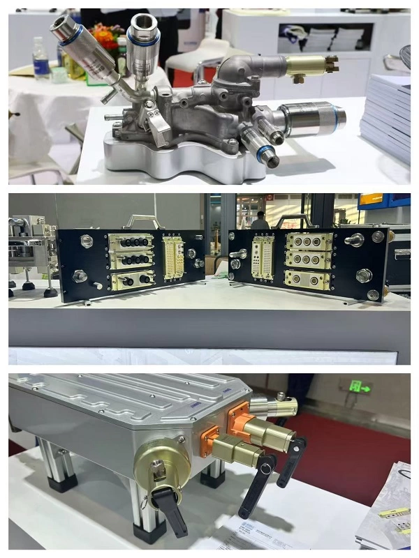 与此同时,面向电性能测试场景的C9对接板总成成为展台另一大亮点。该系列产品集成电气与气液路接口,支持托盘测试系统的全自动化连接。其中,C9自动对接板适配大批量产线的高效测试,C9SD手动对接板则通过模块化设计灵活应对小批量需求,搭配C9M对接模块进一步扩展兼容性,覆盖超高电流及复杂流体连接场景。展会现场,工程师通过动态演示直观展现C9系列的高效性与可靠性,吸引集成商深度探讨技术细节。