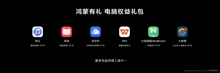 为了感谢用户一直以来对鸿蒙系统的支持,华为也为鸿蒙电脑用户正式推出价值超过800元的“鸿蒙有礼”专属权益。购买HUAWEI MateBook Pro 或HUAWEI MateBook Fold ULTIMATE DESIGN系列新机的用户,即可领取包含华为音乐超钻会员、华为阅读会员、华为云空间200G会员、WPS Office 超级会员年卡、亿图脑图MindMaster VIP会员季卡、大智慧 Level2&波段王季卡,助力用户在办公创作、内容管理与金融理财等场景下,全面畅享鸿蒙电脑带来的效率提升与体验升级。这种“生态反哺”模式,既降低用户迁移成本,也为开发者开辟增量市场。