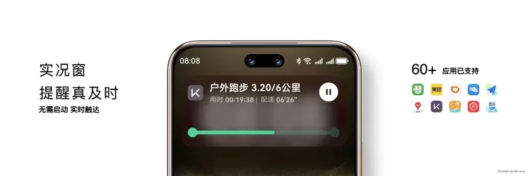 •超60款应用已支持实况窗及时提醒:鸿蒙版支付宝、高德地图、百度地图、美团、京东、滴滴出行等60余款应用已支持实况窗。nova星人可以在手机锁屏页、桌面、通知栏等位置实时查看打车、导航、出行、外卖进度,无需频繁启动应用即可掌握服务状态。