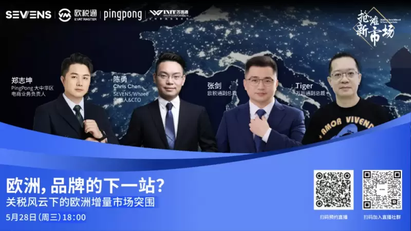 5月28日(周三)18:00,万邑通副总裁Tiger Wang、SEVENS创始人Chris、PingPong大中华区电商业务负责人郑志坤、欧税通副总裁张剑将为大家带来一场深度对话,以“欧洲,品牌的下一站?关税风云下的欧洲增量市场突围”为主题,从欧洲履约策略、品牌营销、支付、合规等角度,共同探讨中国品牌如何在欧洲市场布局突围。