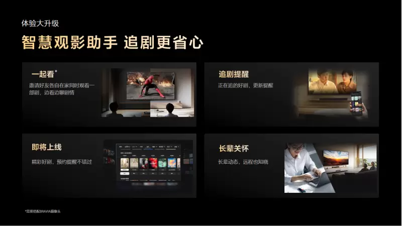 数字化时代,如何高效管理电视内容、提升观看体验成为了用户关注的焦点。索尼始终走在产品数字化的前沿,通过洞察消费者观看习惯,全方位全场景为观众匹配适应的智慧观影助手。支持异地好友实时语音共看,边看边聊剧情更符合年轻人社交习惯,更有贴心的追剧提醒、新剧上线提醒,以及长辈关怀模式,配合适老交互界面设计,打造全龄友好的交互生态,让各种需求的观众都得到最佳的观影体验。在使用习惯上,用户可通过手机控制电视与回音壁,直接在BRAVIA Connect应用程序调节音量与设置,简化操作使用户告别遥控器和屏幕菜单,将用户手机使用习惯无缝迁移至家庭娱乐场景。