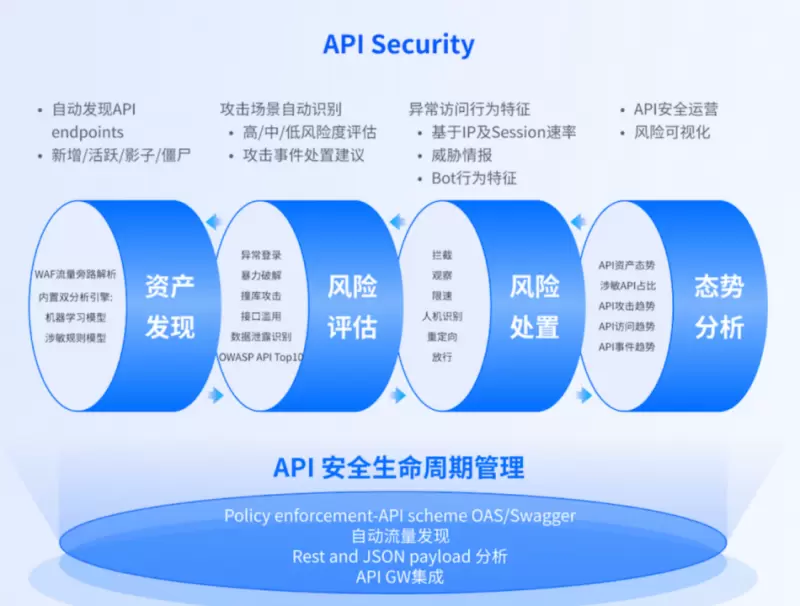 腾讯云WAF具有强大的API发现能力,腾讯云WAF可以帮助企业用户全面清点API资产、智能发现API动态变化及风险趋势、精准识别API暴露面及敏感数据,灵活、全面、精准构建API全生命周期安全防护。在落地实践中,腾讯云WAF-API安全帮助某大型医院全面梳理了API资产,发现医院APP存在大量无需鉴权即可访问的API,并迅速处置了API风险,避免了百万级敏感数据的泄露。