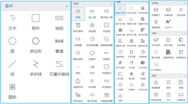FWebSCADA在组态设计上极具优势,支持所见即所得的画面组态功能,拖拉拽方式即可完成简单组态界面。多维度可视化,支持灵活的报表应用,全方位的报警展示、丰富的图表图库以及与视频、多媒体、GIS系统无缝集成。可选择JavaScript和VBA两种脚本语言。2D/3D自由组合,可打造数字孪生场景。