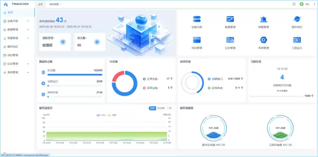 FWebSCADA采用采集+存储+服务+平台一体化设计。一体化部署设计大大降低采集、存储、服务之间的传输延时,降低运维成本,提高安全性。一体化采集可实现设备层数据的高度集中,消除信息孤岛,可贯穿控制层、存储层和监视层的数据和逻辑链路,实现跨层级的功能协作和数据共享。
