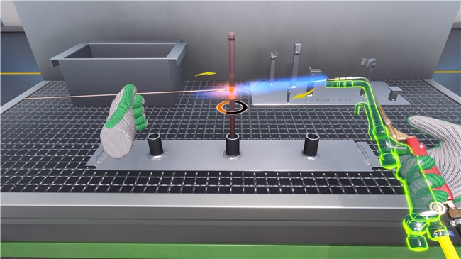 作为智能制造灯塔工厂典型场景的重要支撑,该XR实训平台深度融合空间计算与物理仿真技术,构建出1:1还原产线环境的虚拟仿真场景。通过VR技术,将传统焊接中的14种动作技巧虚拟化,同时融入焊接时间、铜管颜色变化、火焰声音元素,贴近真实焊接场景,实现业内首创。