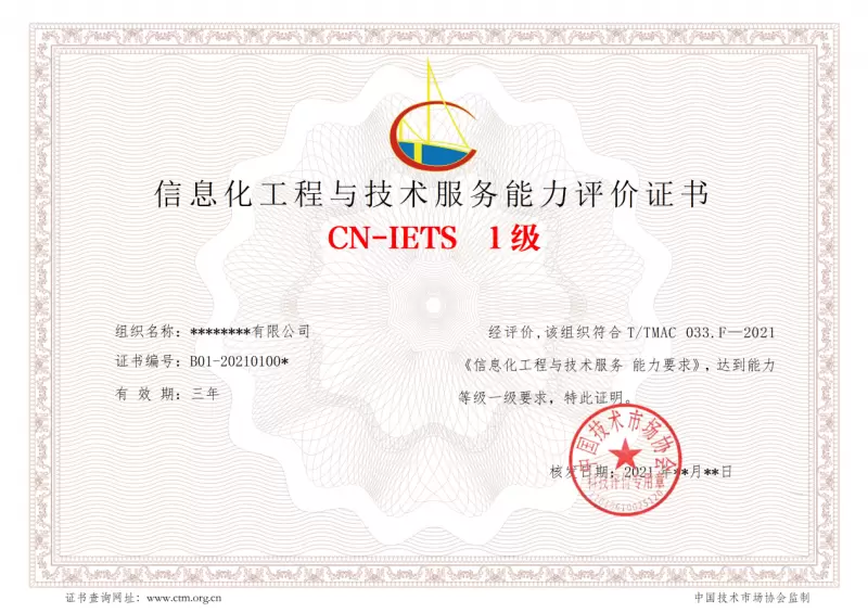 在此背景下,中国技术市场协会发布《信息化工程与技术服务 能力要求》团体标准,制定《信息化工程与技术服务能力评价工作管理办法》,开展“信息化工程与技术服务(CN-IETS)”能力评价工作。